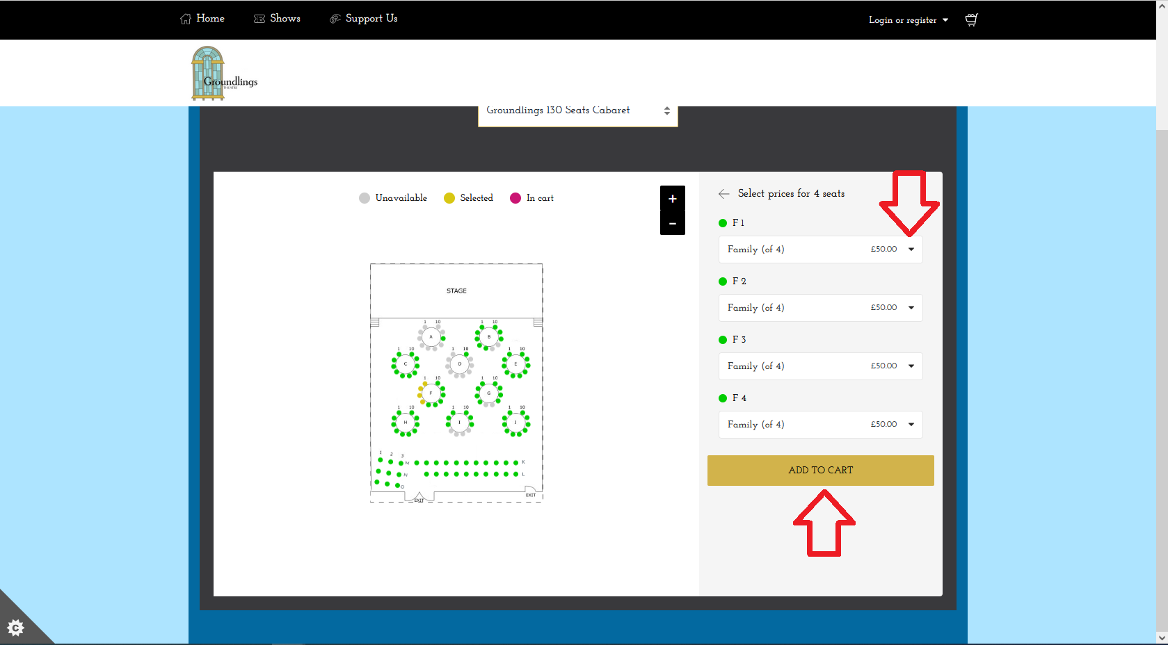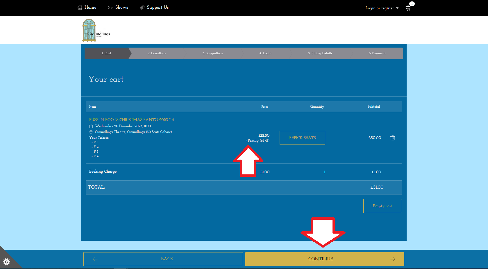 This page is to double check you have chosen the correct seats with the “Family of 4” option. Once satisfied then please click on Continue.